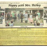 On April 16, 2020 The Blanchard News (Volume 111, Number 25) ran an article on page 10 titled, "Happy 90th Mrs. Richey: A Tribute to Mrs. Richey" by Vickie Eisenhour-Coyle and photos courtesy of Moe and Liz Armstrong. The full article is provided as a PDF attached item.