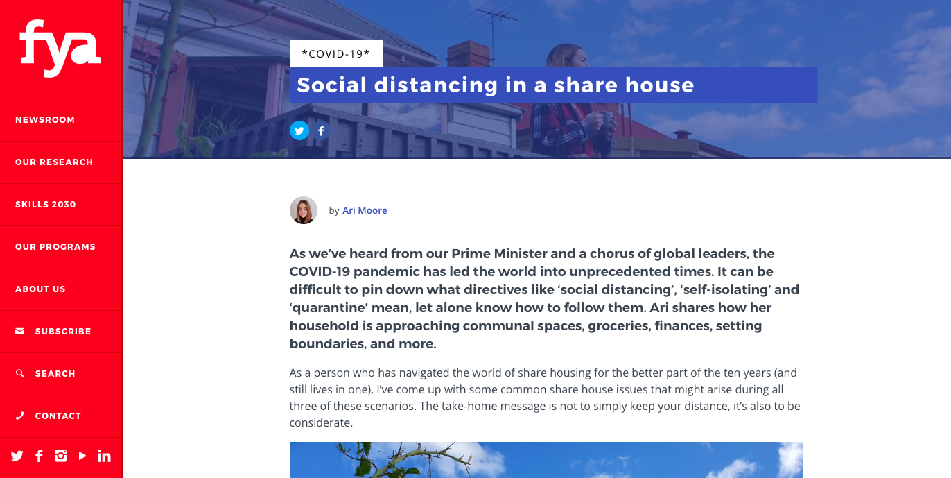 Article for The Foundation for Young Australians: Social Distancing in a Share House