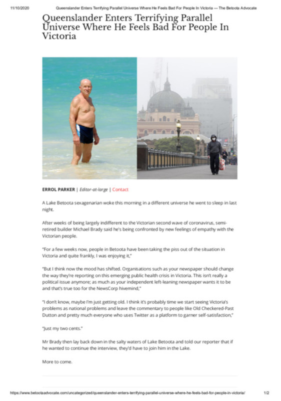 satirical online news article, from The Betoota Advocate.