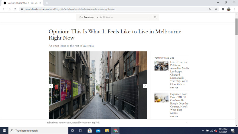 The second lockdown was an extraordinarily difficult time for Victorian citizens. Our social media feeds were filled with Australians and the international community celebrating their newfound freedom, whilst we were stuck at home, demoralised, and overwhelmed with the rising cases and deaths in our hometown. This article struck me because it was the only publication I saw in this time which accurately captured the loneliness and hopelessness that was felt throughout the state.