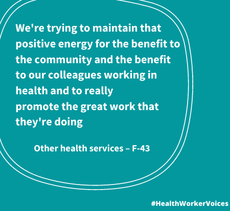 Quote from Female aged 43, Other Health Services. Image created by the Health Worker Voices project: https://mspgh.unimelb.edu.au/healthworkervoices