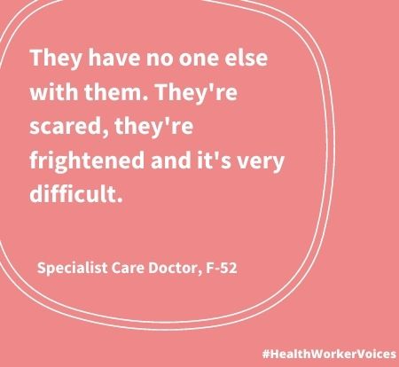 Quote from Female aged 52, Specialist Care Doctor. Image created by the Health Worker Voices project: https://mspgh.unimelb.edu.au/healthworkervoices