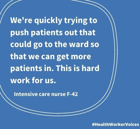 Quote from Female aged 42, Intensive Care Nurse. Image created by the Health Worker Voices project: https://mspgh.unimelb.edu.au/healthworkervoices