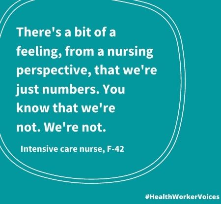 There's a bit of a feeling, from a nursing perspective, that we're just numbers. You know that we're not. We're not.