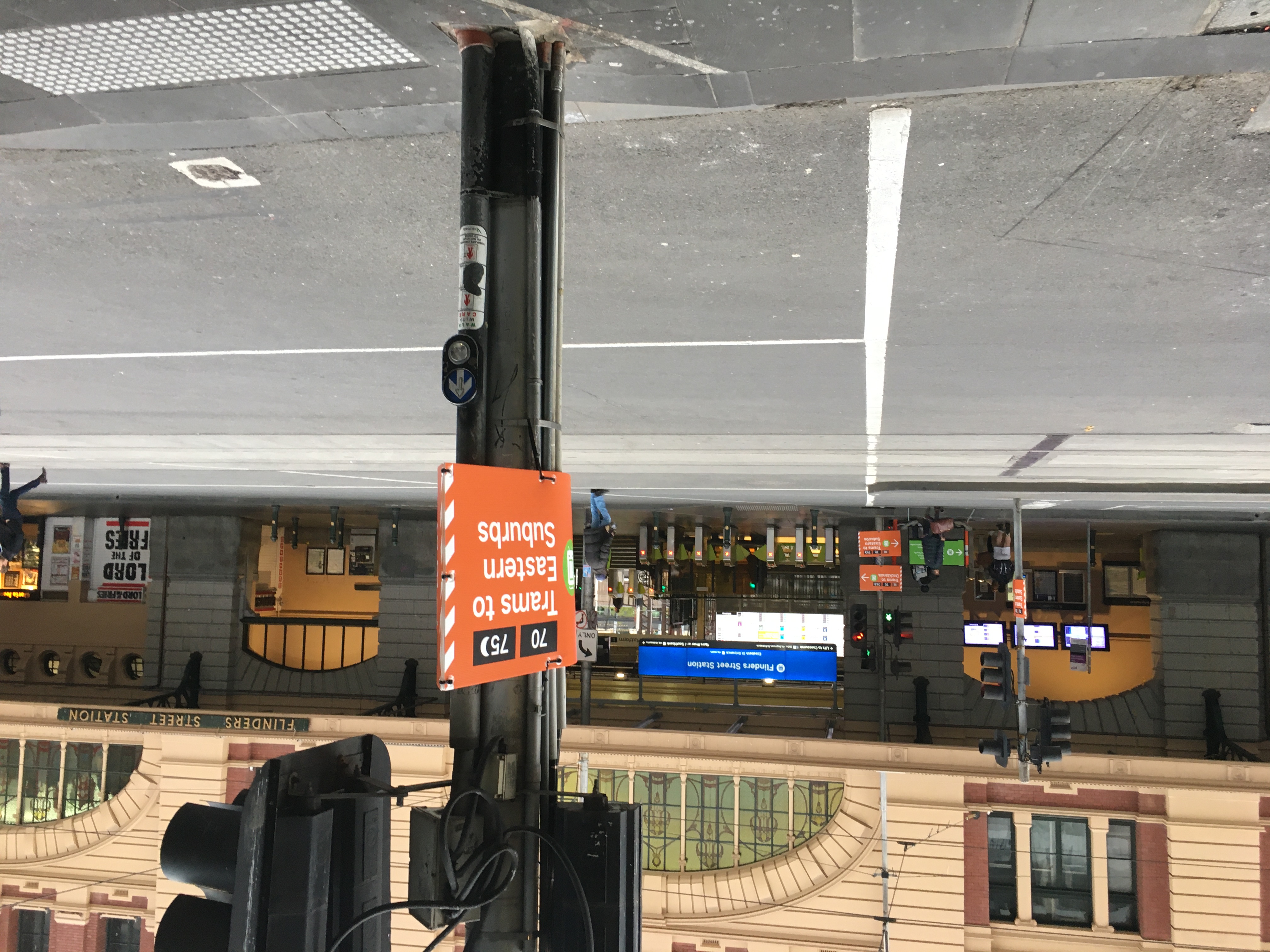 Flinders Street Station in Melbourne city is one of the busiest train stations in the metro network. Normally at 7.45 on a week day morning it would be thronged with commuters, all heading off to work. This morning it was almost deserted. From today almost all workplaces, other than those deemed 'essential' are closed and most people who can are working from home. I work at the Old Treasury Building in the city. We are a heritage site and museum, now closed of course. But we are trying to document the urban environment during this extraordinary crisis, while being extremely careful of our own exposure to risk. From time to time we will share some of our photos and experiences. 24 March 2020, 7.45 AM