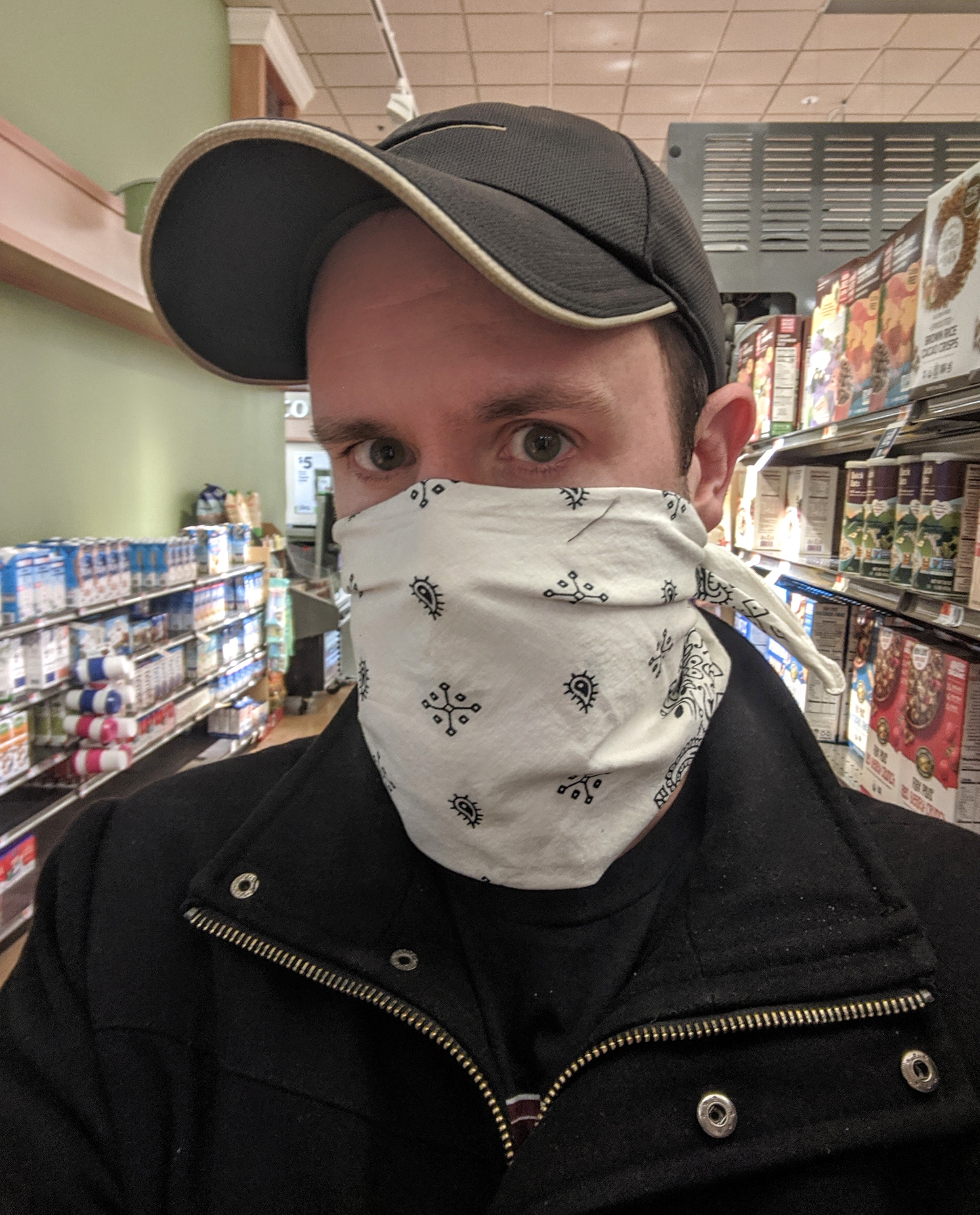 Selfie of man wearing a bandana as a face mask to go grocery shopping - Quincy, MA