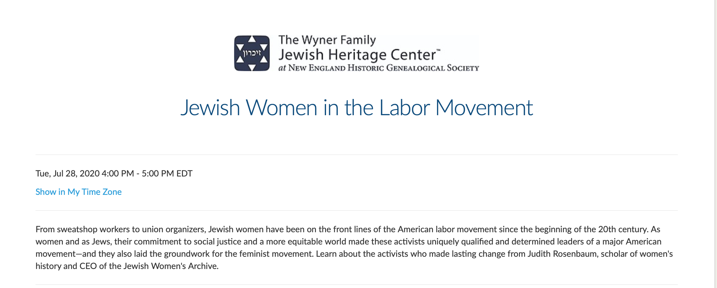 This is an example of the types of virtual programs held by the New England Historic Genealogical Society. Based on the primary sources held at this institution, the society invited audiences to engage with the material virtually.