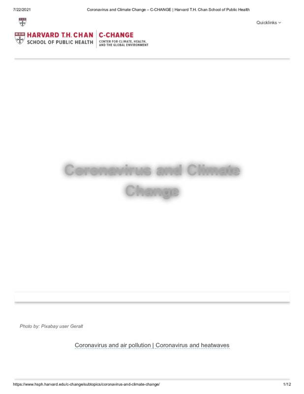 2021-07-21Coronavirus, Climate Change, and the Environment