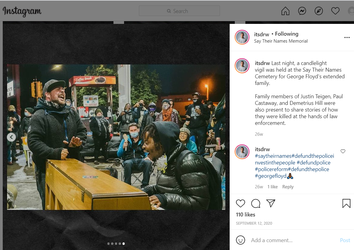 Last night, a candlelight vigil was held at the Say Their Names Cemetery for George Floyd's extended family.