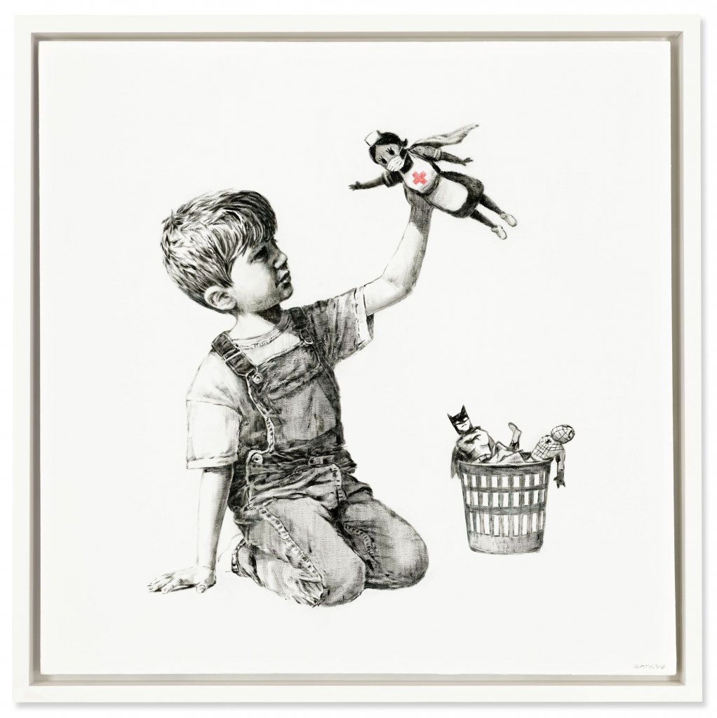 Banksy’s ‘Game Changer’ Canvas sells for a record £16.7m in aid of NHS charities, 2021