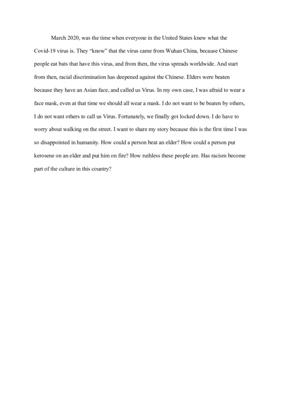 I will share my story that is about racism because of Covid-19