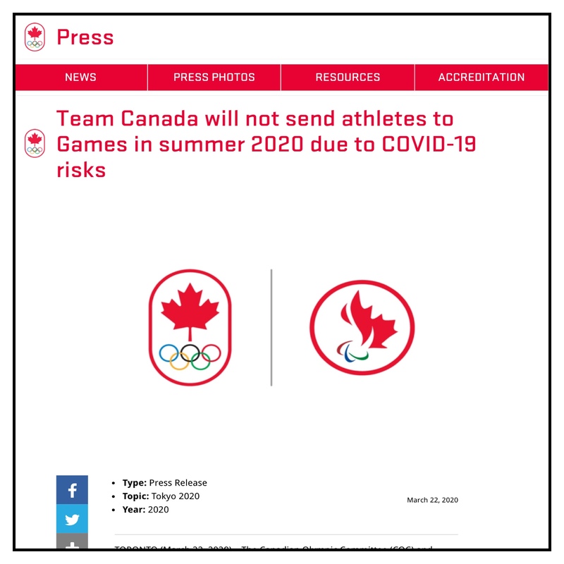 Press release from the Olympics committee in Canada saying they will not go to Tokyo Olympics