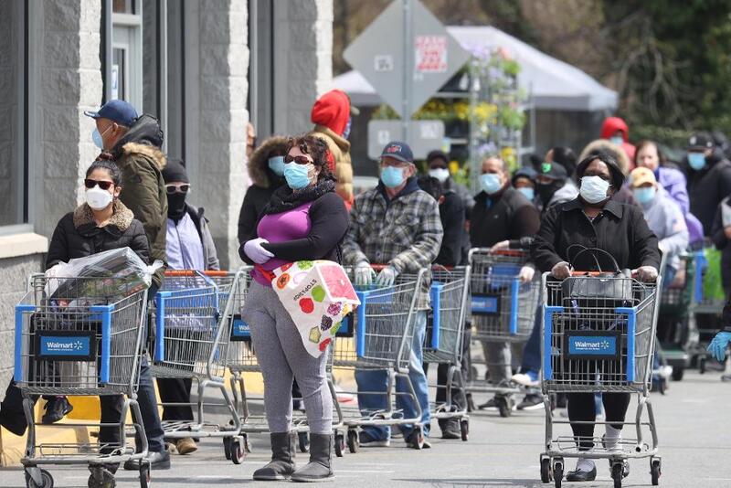 During this special time, people need to wait in line outside the supermarkets. Guards will only let ten people in at once to avoid people getting infected.