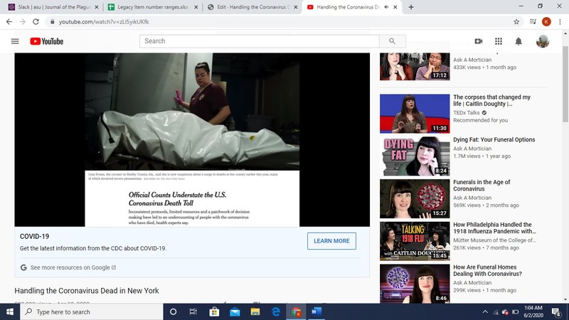 YouTube video from Ask a Mortician, in which mortician Caitlin Doughty addresses some misconceptions about whether New York City's response to the coronavirus - esp. the use of refrigerated trucks, holding bodies in parking lots, anonymous mass graves - are exceptional and worth being upset about, pointing out that most of these practices are actually very reasonable, practical, and standard practices.