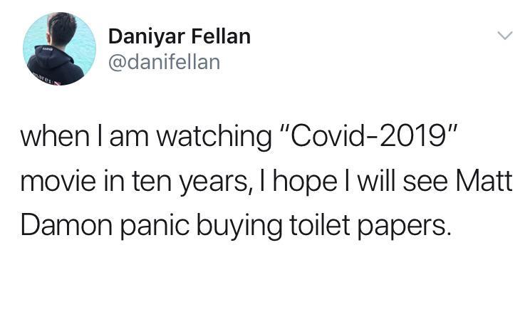 The image makes fun of how many some Americans overreacted to the news of toilet paper shortages and that they were stupid for doing so. It also shows that not all important events will make good movies.