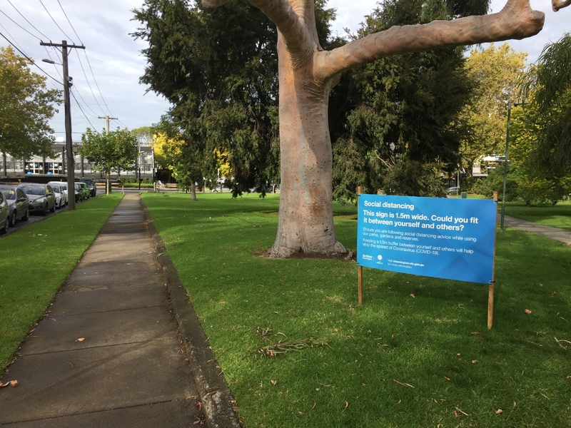 Example of a social distancing sign placed in all parks in the City of Stonnington.