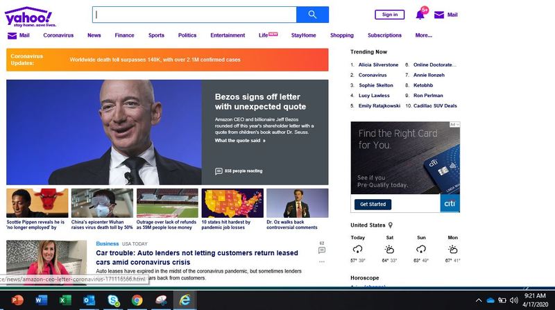 Screenshot of headlines on Yahoo News during the Covid19 outbreak.