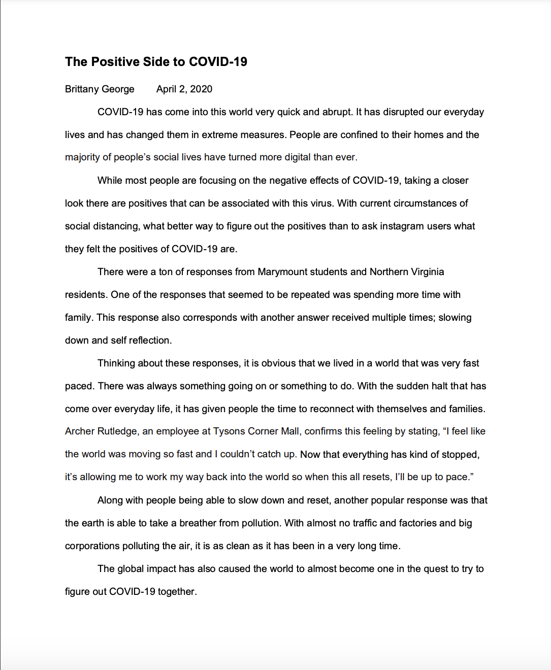 a global pandemic, was surprisingly quick. The first that I heard about the virus was from