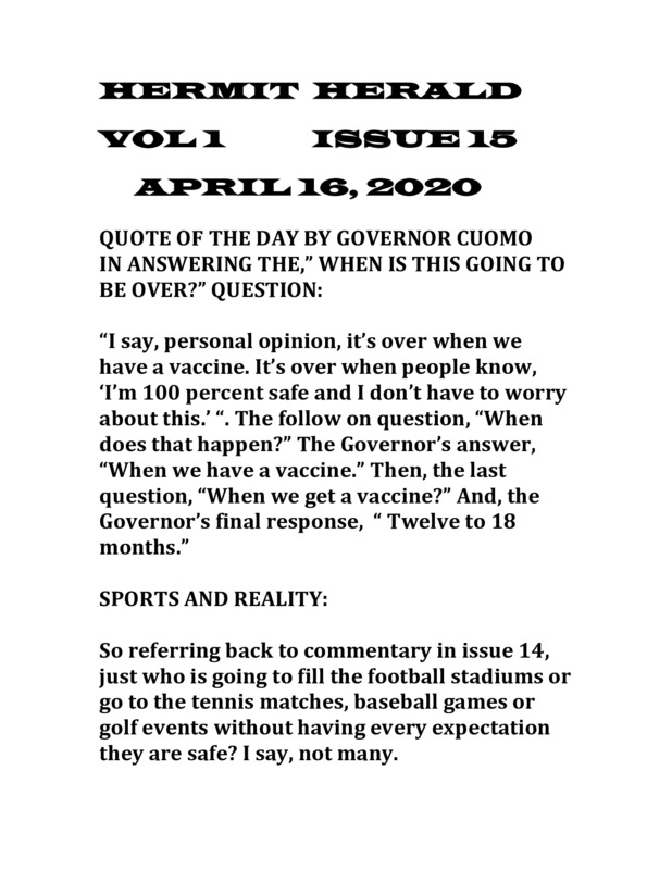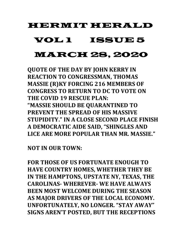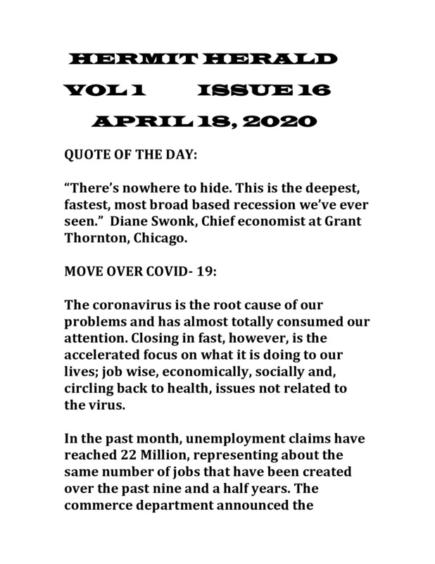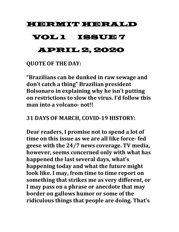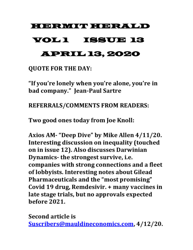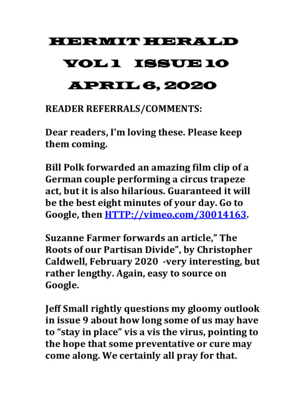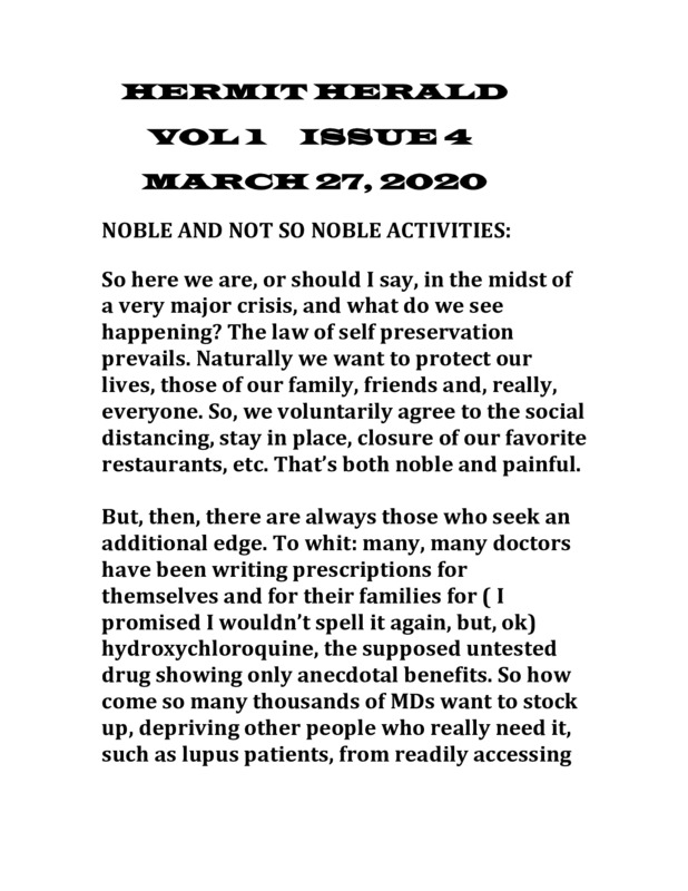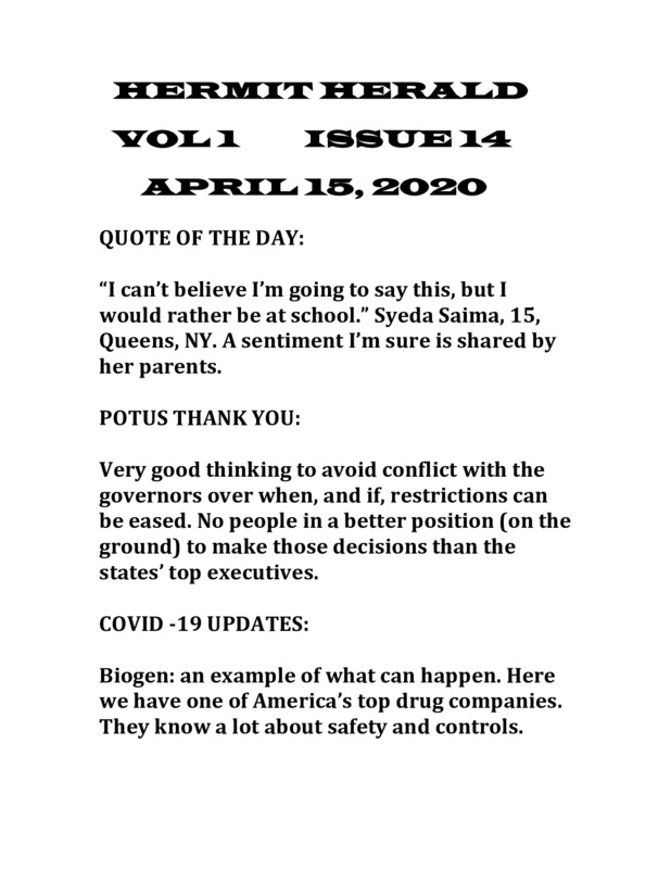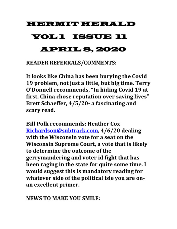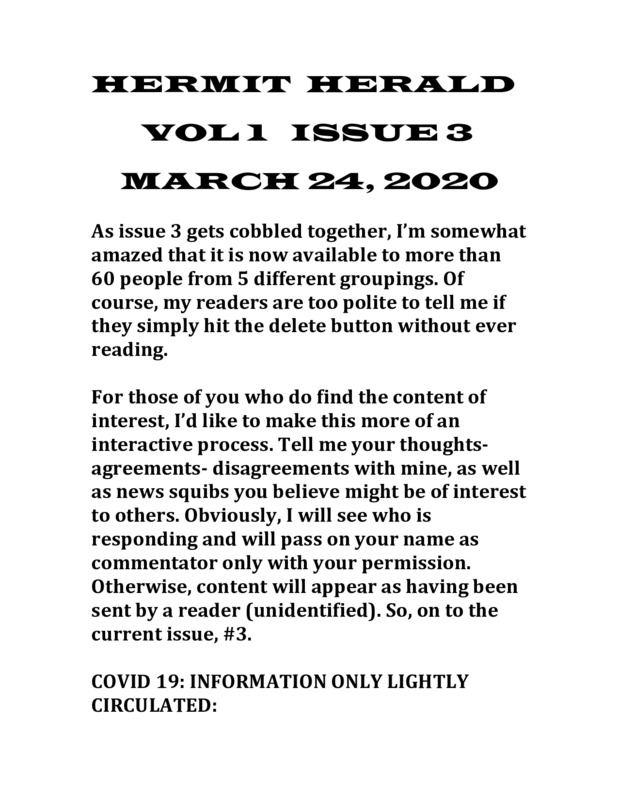 China burying CV problem; U.S. Stimulus pkg; more on the hydroxy Issue; Capt. Crozier, cont’d; Crime & CV.