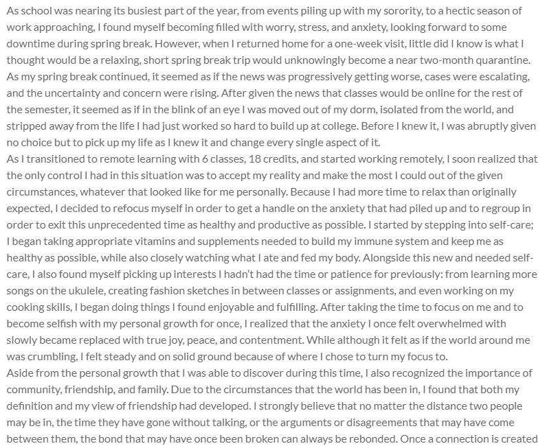 COVID 19 Journal by Kaitlin Whalen written 04/21/2020
