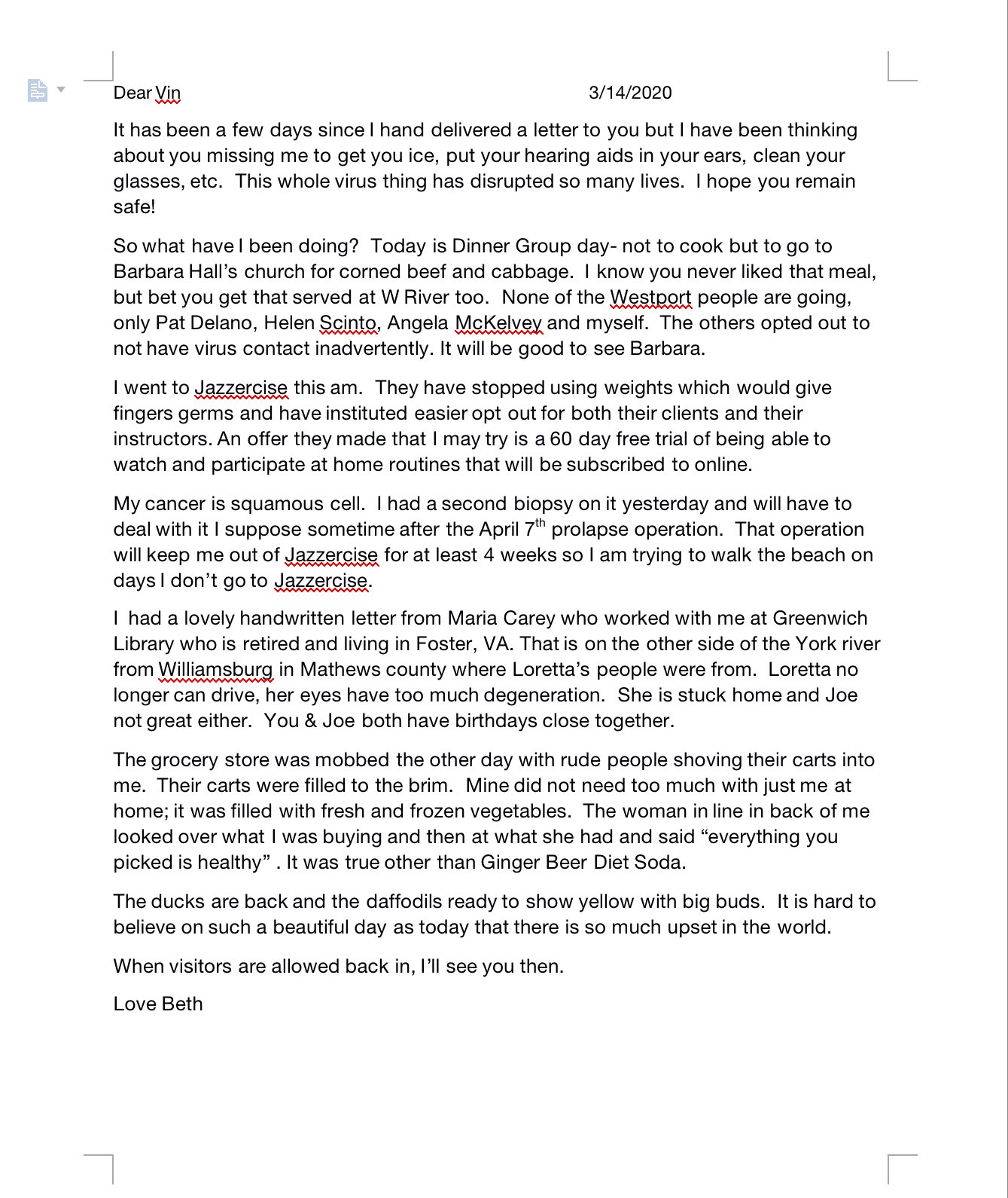 when I could not visit my husband in the nursing home for 1/2 hour each day, I decided to write him a one page letter each day with my thoughts or doings. This is because he cannot pick up a phone on his own nor could he hear my voice register if we did talk on the phone. At first I delivered these letters, then the nursing home determined they had to let the germs evaporate for 48 hours. So now I send them though USPS and they probably still hold them for 48 hours before he gets them.