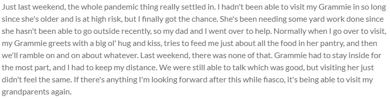 [Curator's Note]: A personal account during the pandemic.