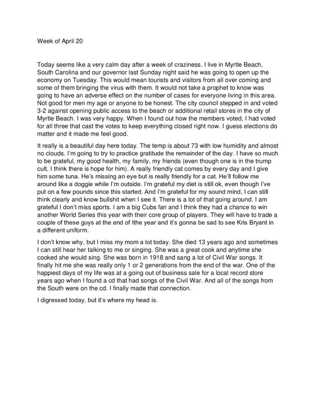 A Word document file of what my experience with the pandemic has been as well as the impact it had on my family
