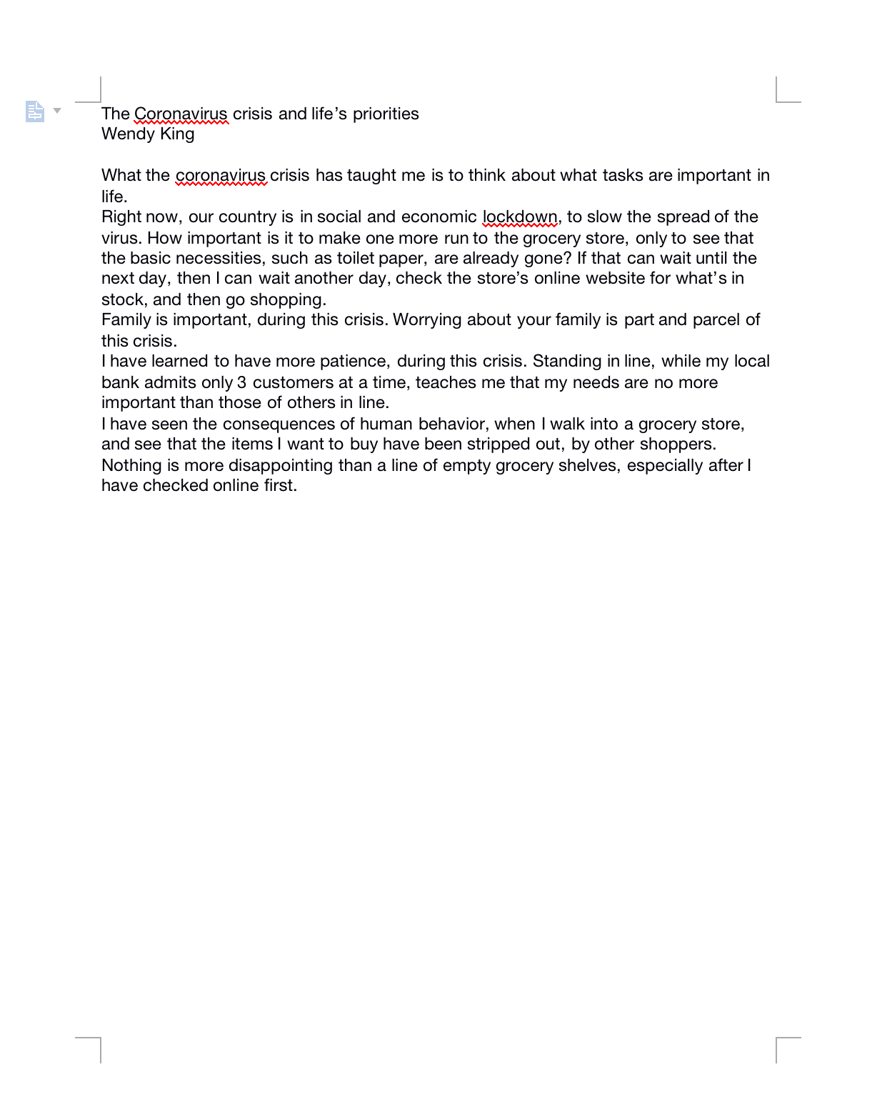 Description of priorities and the important things in life during the COVID-19 pandemic.