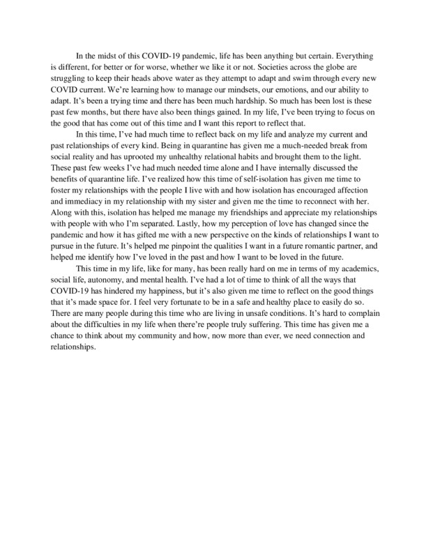 Even though COVID-19 has disrupted everyone’s plans, don’t let it stop you from hanging out with loved ones (at home). I was really frustrated when I had to leave college and come back home, but I’ve actually enjoyed it more than I thought I would. Even though I miss being in class and seeing my friends, it is nice to finally have some time that I can spend with my family.