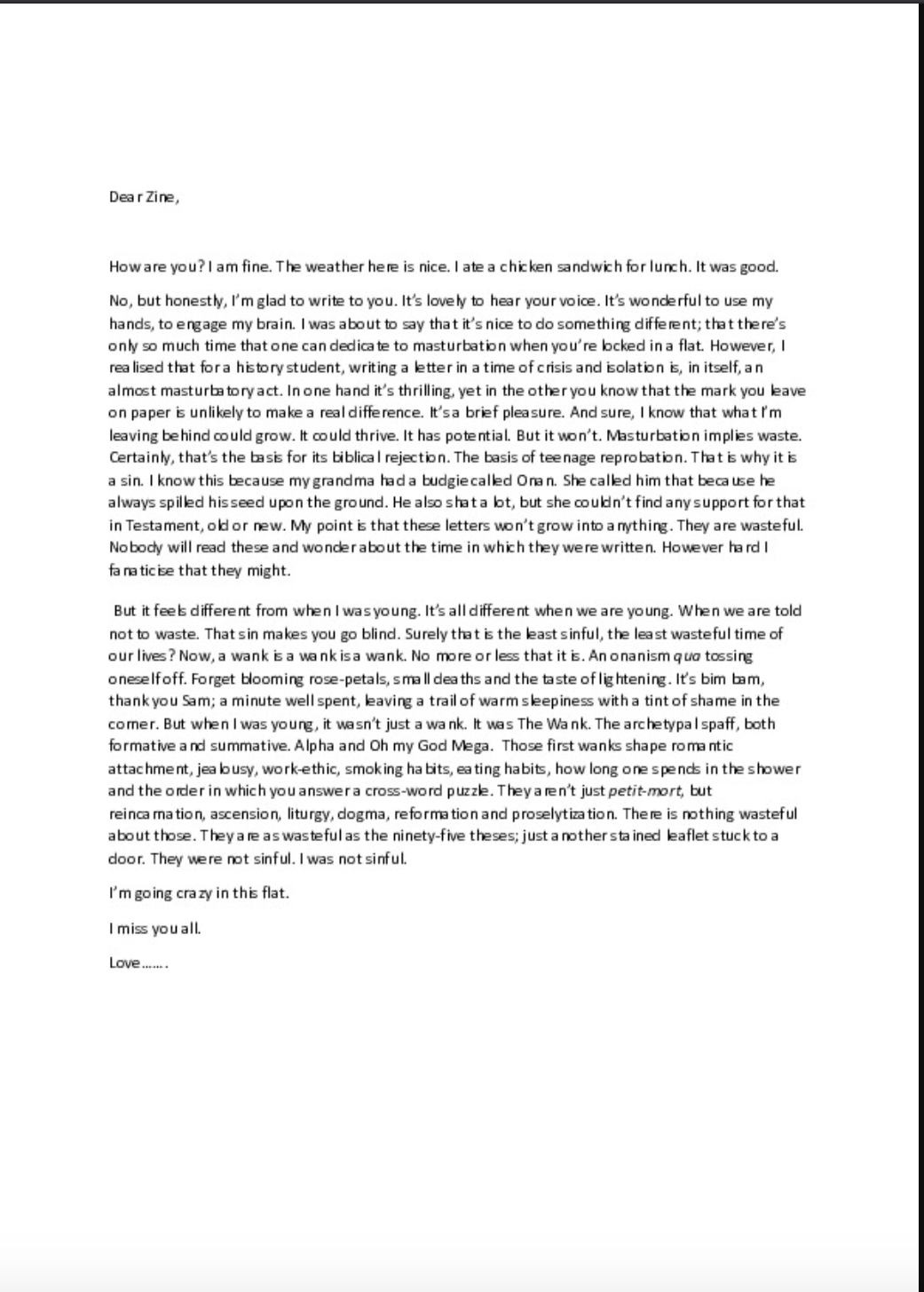 Prose reflecting about self-isolation