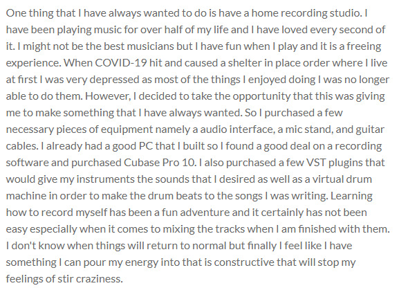 Reflection of building a home studio during a pandemic.