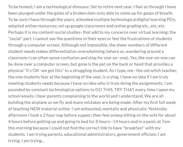 Reflection of a teacher's experience with online teaching.