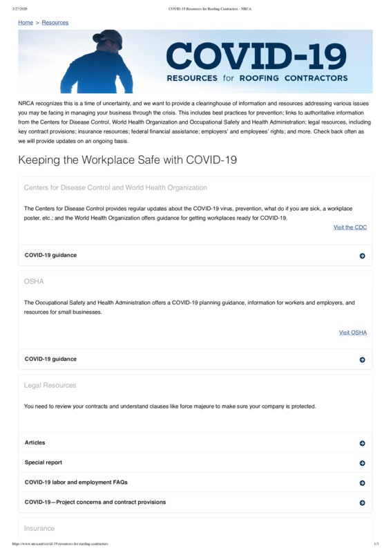 Resources for roofing contractors during the COVID-19 crisis #HIST 5241