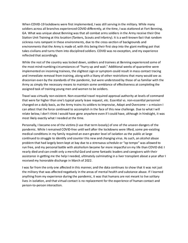 I was a SSG in the US Army when the lockdown hit. The isolation let my personal demons almost get the best of me, but lessons were certainly learned and I pray we never get to that point ever again.