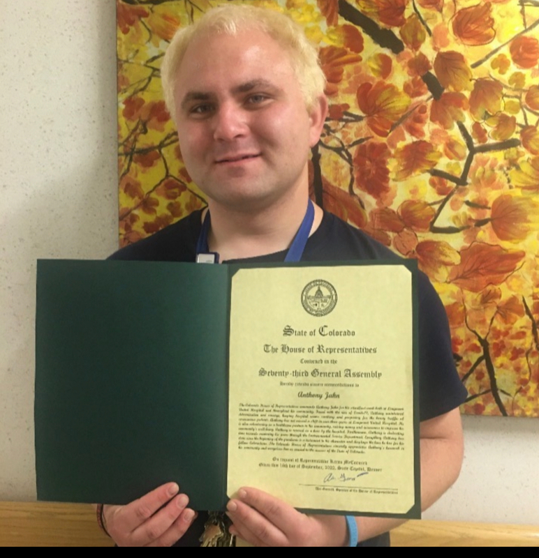 Explains about the warzone in the emergency department doing good during those times to bring people together in the community and a hero being honored by the state of colorado for all his work .This was submit to the house of representatives and this story has been shared in schools such as fredrick highschool by students who look up to him thank you