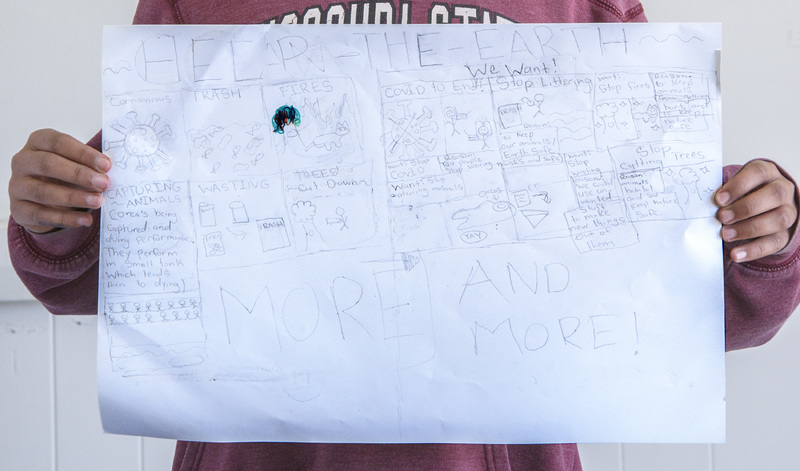 Help the Earth! We want Covid to end! Stop littering! Stop fires! Stop capturing animals! Stop wasting! Stop cutting trees!