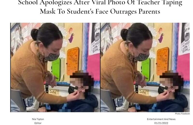 This is a news story from Your Tango by Nia Tipton. This is about a middle school in Pennsylvania, where a video of a teacher taping a mask to a student caused outrage. The photo was taken at Pennfield Middle School in Hatfield. The photo went viral and appeared on Sean Hannity's website. The middle school announced that they are going to conduct an investigation over this scandal. Parents also expressed their anger at school board meetings over this. The mother of the student getting his mask taped to his face says that she never intended for the story to go viral. She used the photo to gain support from a Facebook group prior to a school board meeting. She says that other individuals in the group took it upon themselves to spread this story further.