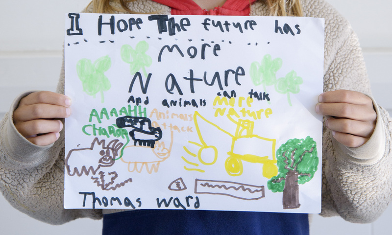 I hope the future has more nature, and animals can talk. (The bulldozer is tearing down buildings, and the animals are attacking, to make more room for nature.)