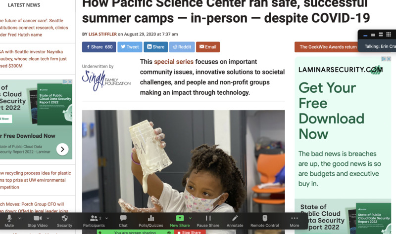 The attached article is something that is probably not well known. In Seattle, Washington there is the Pacific Science Museum, a fun educational museum for all ages, but focused on kids. Every summer they run educational camps for K-8 graders. It was unclear if after months of distance learning (early pandemic, 2020) students would be physically or emotionally ready to do a group activity in person. PacSci’s camps were able to run while students were socially distanced and masked. This matters because there has been a lot of rhetoric about kids not being able to wear masks for a variety of reasons, but this article proves that kids were able to understand social distancing and mask-wearing so they could have a safe and fun thing to do. With these practices in place, combined with low group sizes, and the use of a lot of outdoor time, they didn’t have any transmission cases for the whole summer. Not included in the article but they had the same success the next summer, 2021, and are on track to continue again the summer of 2022. The significance is not just to a collection focused on children, but also to the service industry since this is a less formal education setting that leans more toward front-facing customer service.