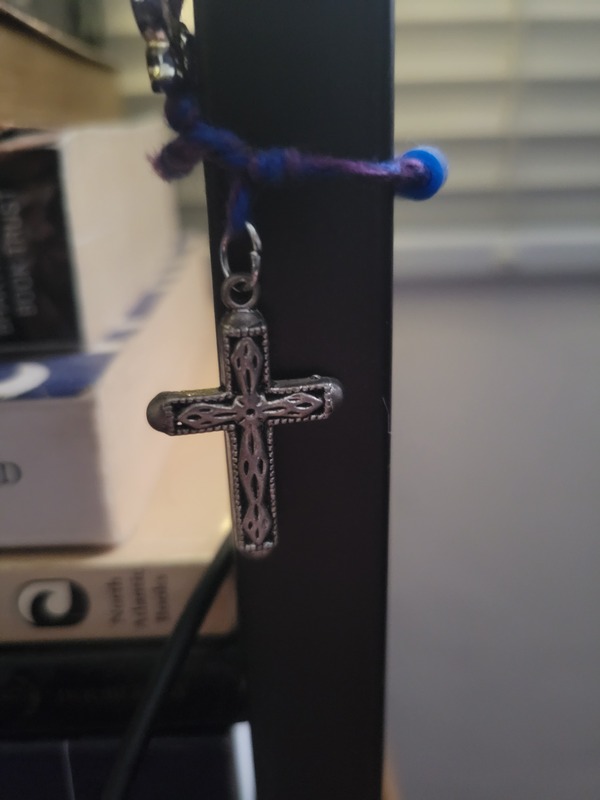 The necklace in the picture is one that he had made for me that I hang on my shrine at home. He was a very religious, and it was that religion that helped him get from his home country and make it to the United States. This is a common story for many of the youths in my program, they take religion seriously and try to continue the traditions they had in their home countries. They could not go to Church during most of the lockdown and found other ways to express their religiosity, this is how the youth in my story expressed his.