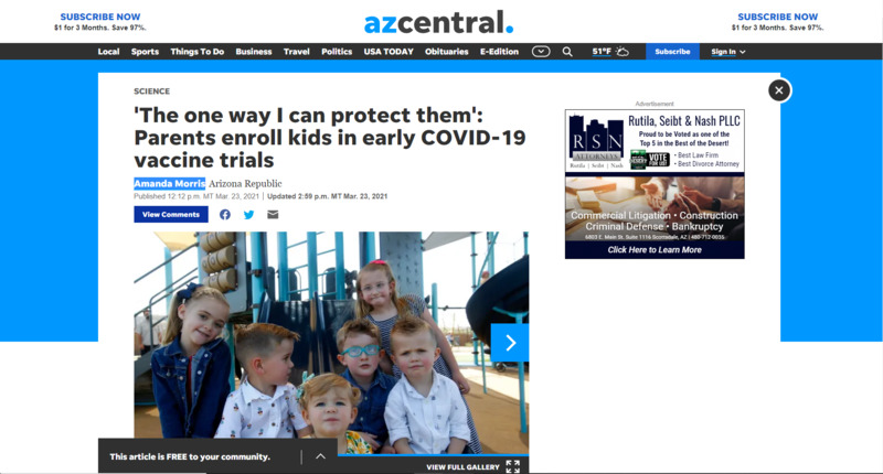 No existing COVID-19 vaccine is approved for anyone under the age of 16. The companies responsible for the vaccines are working on getting another vaccine approved for children and have begun trial phases. Some Arizona parents have enrolled their children in the trials, not only so their children can get vaccinate, but also as a way to help the community.