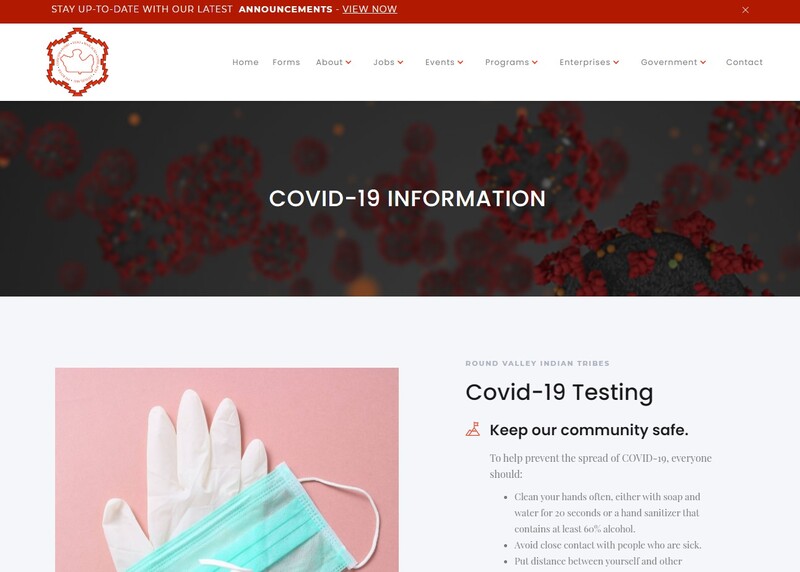 This is a webpage hosted by the Round Valley Indian Tribes to present COVID-19 testing information (downloadable flyer), procedures to follow to help prevent the spread of COVID-19, and a form to request assistance related to COVID-19 impacts.