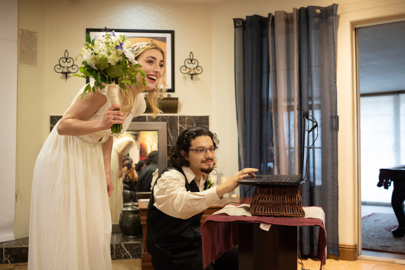 My daughter and son-in-law had a Covid wedding. Only days after the Solano County shelter in place was reinstated. They have waited so long to be married. Waiting for Covid to be over just seemed endless. The wedding was held at the grooms parents house and only a few very close family attended. Everyone else was sent invitations to attend via zoom. The photograph shows my daughters and her new husband thanking guests online. In all honesty it was a perfect day! This was shared with permission from the Bride and Groom. Covid Wedding!