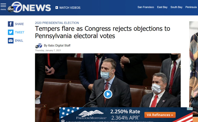 Excerpt from article: WASHINGTON -- Objections to Pennsylvania's electoral votes failed in Congress on Thursday as tempers flared during an early morning debate.