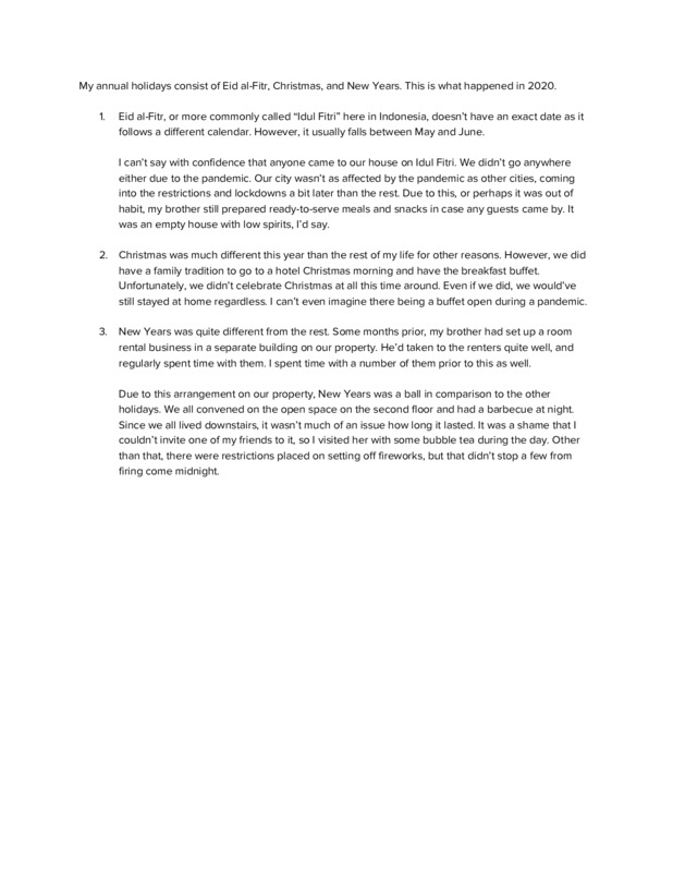 My annual holidays consist of Eid al-Fitr, Christmas, and New Years. This is what happened in 2020. I think it's important to be able to document experiences from different walks of life. I don't know how many people would celebrate the first two in the same family, but they've been a big part of my life since I was born.