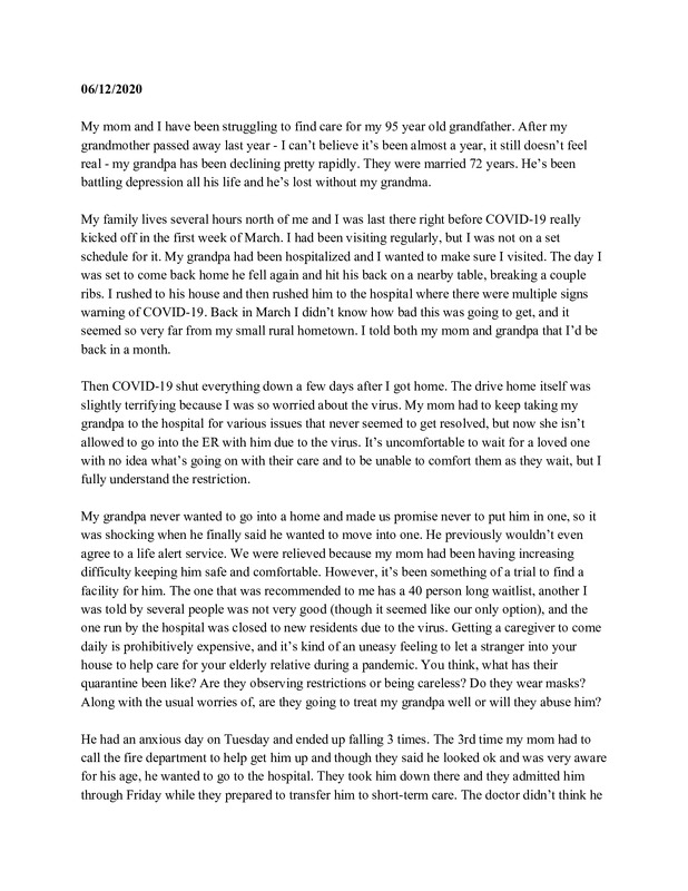 I share my experience helping get my grandfather into an elder care facility from afar during COVID-19.