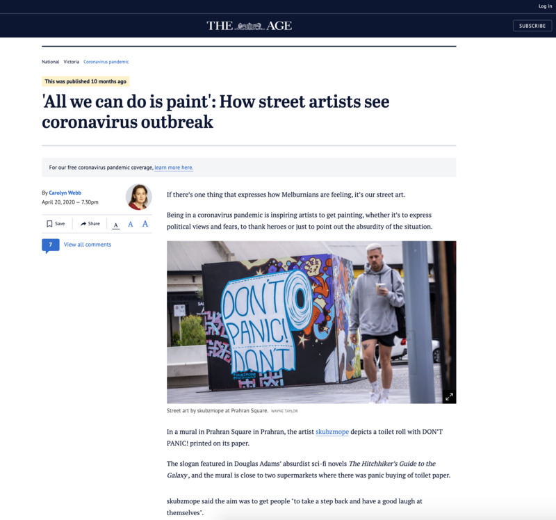 This article quotes several street artists about how the pandemic has impacted their art and their messages. The direct quotes amplify their messages, although the street art speaks volumes in its public arena.