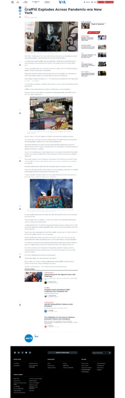 The news story is both an interview with a street artist in New York and an exploration of how street art has taken off in New York as a result of the pandemic. The artist and the article report that many businesses have boarded up their windows and vacated, leaving a lot of unattended public space for artists to occupy, especially for illegal graffiti. Not everyone supports the increase in graffiti and street art, as other residents complain about the graffiti-related crime and vandalism.