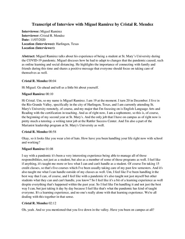 Miguel Ramirez, a St. Mary's University student, shares his remote learning experiences.