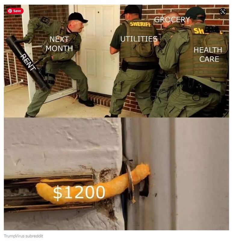 This meme, posted on the popular social media platform Reddit, represented and still represents the feelings of many Americans as they attempted to survive the pandemic with a one time payment of $1,200. For many college students there was no money at all, it is common for parents to still claim their adult children as dependents for tax purposes and because of that their children were not eligible for the stimulus check.